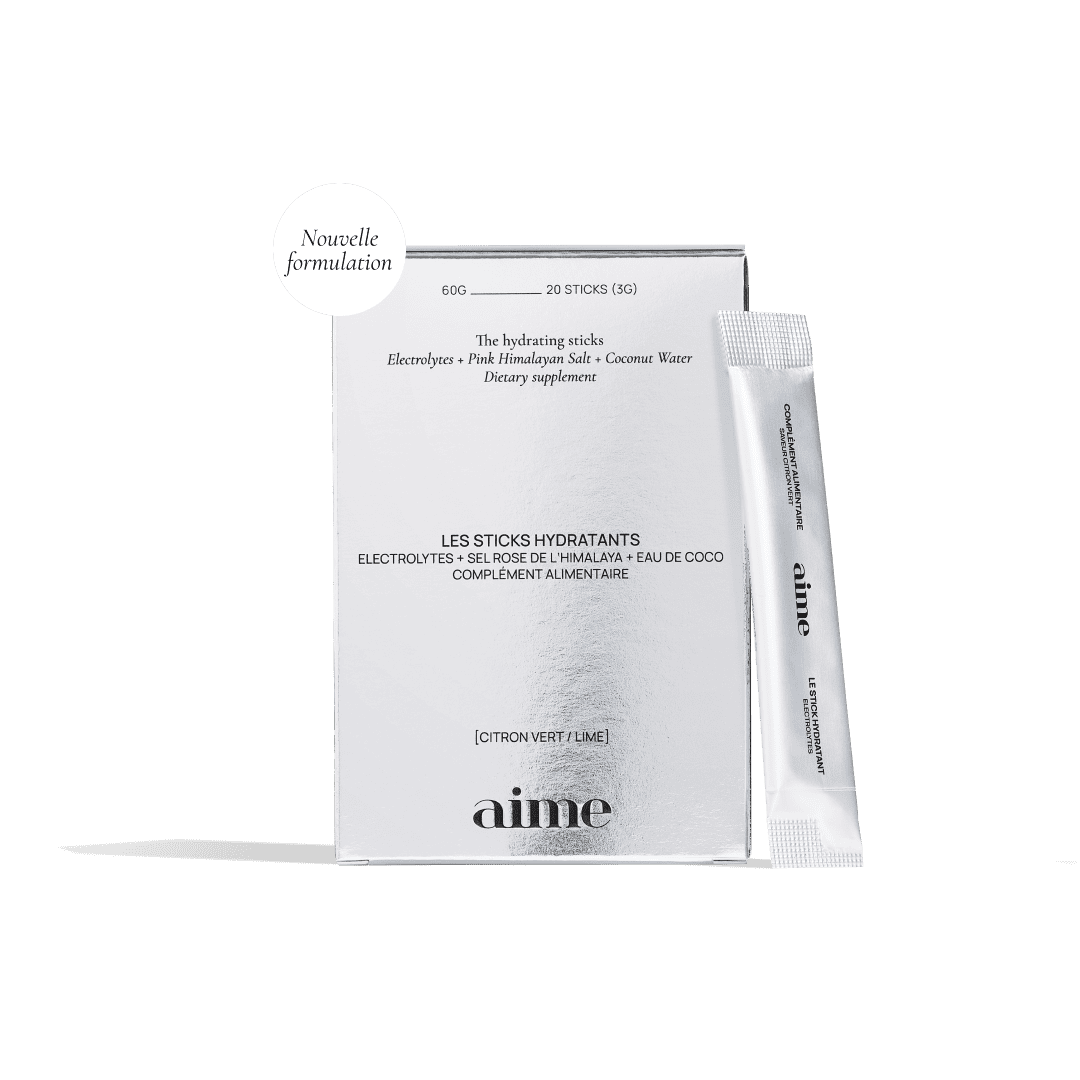 Les sticks hydratants Aime associent quatre électrolytes essentiels – calcium, magnésium, potassium et sodium – à du sel rose de l’Himalaya et de l’eau de coco pour soutenir une hydratation profonde et durable. Ces minéraux aident à compenser les pertes liées à l’effort, à la chaleur ou aux journées intenses, tout en favorisant la récupération musculaire et en réduisant la fatigue.